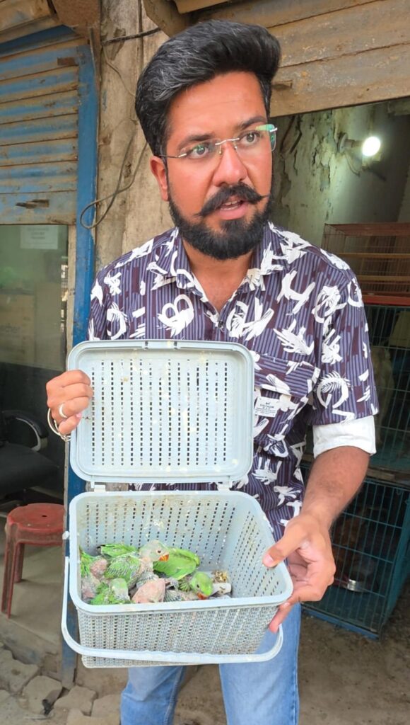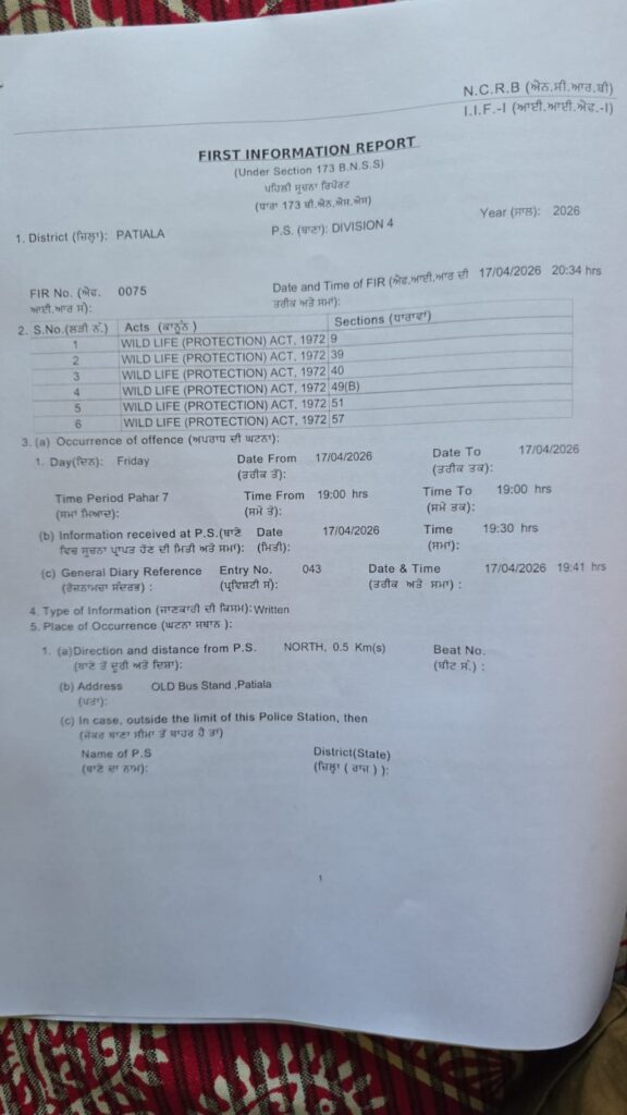 Patiala, April 20 (Himanshu Harry): In a significant crackdown on illegal wildlife trade, a joint operation led by environmentalist and wildlife conservationist Sahil Sharma today resulted in the rescue of several protected bird species during a raid on a pet shop behind the old bus stand in Patiala. On receiving a random message on Instagram from a Patiala resident about illegal sale of parrots, I left for Patiala, called up the Forest Range Officer Sodhi of the Wildlife Department and reached the police station. Meanwhile, along with SHO Ramesh Kumar, we raided the shop of the seller Rajesh Puri and caught him with 21 baby parrots and 15 adult parrots belonging to the Rose Ringed Parakeet and Alexandrine Parakeet. Meanwhile, Sahil Sharma said that the accused Rajesh Puri was brought to the Lahori Gate police station and an FIR was registered under sections 9, 39, 40, 49(B), 51, and 57 of the Wildlife Protection Act, 1972. The action highlights the ongoing issue of illegal bird trade, where chicks are often separated from their natural habitats, leading to high mortality rates and serious ecological imbalance. The authorities have reiterated their commitment to take strict legal action against those involved in wildlife crimes. He said that efforts are being made to ensure the safe rehabilitation of the rescued birds in coordination with the wildlife authorities of Patiala. He further said that this is the 5th FIR that I have registered in the last 2 months, out of which the first was in Chandigarh, the second in Baddi (Himachal Pradesh), the third in Delhi, the fourth in Ludhiana last week and the fifth in Patiala today.