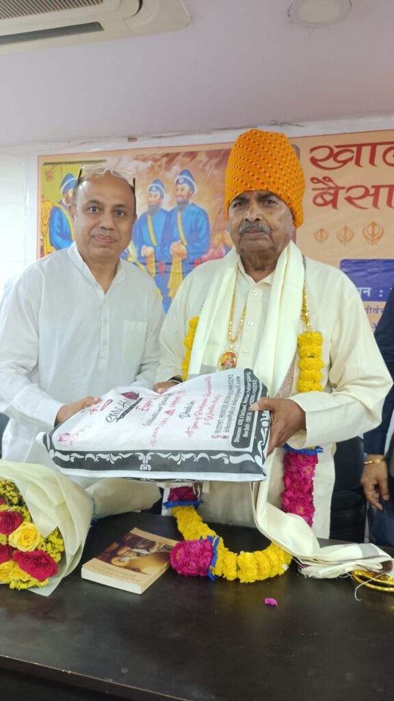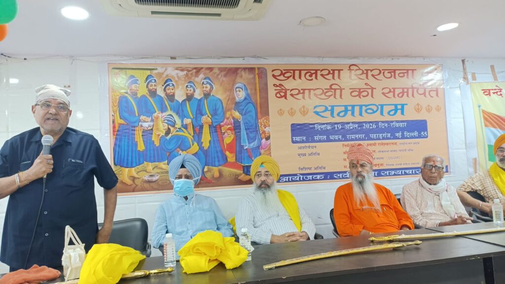New Delhi, April 22 (Bureau Report): A grand function was organized on the auspicious occasion of Khalsa Sajna Diwas and Baisakhi under the leadership of Sarb Sanjha Kultura Manch President S. Harbhajan Singh Deol at Sangat Bhawan, New Delhi. Chief Guest S. Gurlad Singh (Former Jujharu Member, Delhi Sikh Gurdwara Management Committee) while addressing the Sangat said that on the day of Baisakhi, by creating the Khalsa Panth in Shri Anandpur Sahib, the message given by Shri Guru Gobind Singh Ji, one will have to pay the price of the nectar of “Sarbans Vaar” to adopt it in one’s life. Dr. Swami Rameshwaranand Ji said that Shri Guru Gobind Singh Ji sacrificed his life for the protection of the country, religion and society. His life will remain a pillar of light for the generations to come forever. Honorable Member of Parliament from Chandni Chowk Praveen Khandelwal Ji said that he considers himself lucky that he got the opportunity to hear about the golden history of Shri Guru Gobind Singh Ji from scholars. He appealed that we all follow the path shown by her and make India a world guru again. Former MP and BJP Punjab President Shri Avinash Rai Khanna, who arrived from Punjab, addressed the youth and said that they should face the challenges of anti-national forces and adopt the ideals of Guru Sahib in their lives. Presiding over this event, Senior Pracharak of Rashtriya Swayamsevak Sangh Shri Avinash Jaiswal Ji said that such public awareness should reach every village and every city. Meanwhile, renowned scholar Dr. Surjit Kaur Jolly, mentioning the ideals of Mata Gujri Ji, said that women should instill high values in their families and children, so that they can come forward in the service of the country, religion and society. On this occasion, Biharilal Ji, who came from Bhopal, said, “As long as the sun and moon remain, the name of Shri Guru Gobind Singh Ji will remain immortal.” Indian Navy officer S. Mahendra Singh Bali, who has received the President’s Award, said that the current situation is making us aware again that we should adopt the resolve of renunciation, penance and defending the country in our lives. Youth representative S. Surendra Singh Namdhari said that the resolve should be taken to instill the same enthusiasm and passion in the youth that Shri Guru Gobind Singh Ji showed with his life. Specially present in this event were S. Manjit Singh, S. Gurdial Singh, S. Mukund Singh (Rohtak), S. Joginder Singh Dhimija, S. Joginder Singh Chawla, S. Paramjit Singh, Bibi Parmila Hooda, S. Satwant Singh Punia, S. Darshan Singh Dhariwal, S. Birendra Mohan Singh, Dr. Sanjeev Chaudhary, S. Ajit Singh, Ghanshyam Rana, S. Narvinder Singh, Anil Chhabra, S. Rajpal Singh Dutt, Rakesh Dhingra and a large number of devotees.