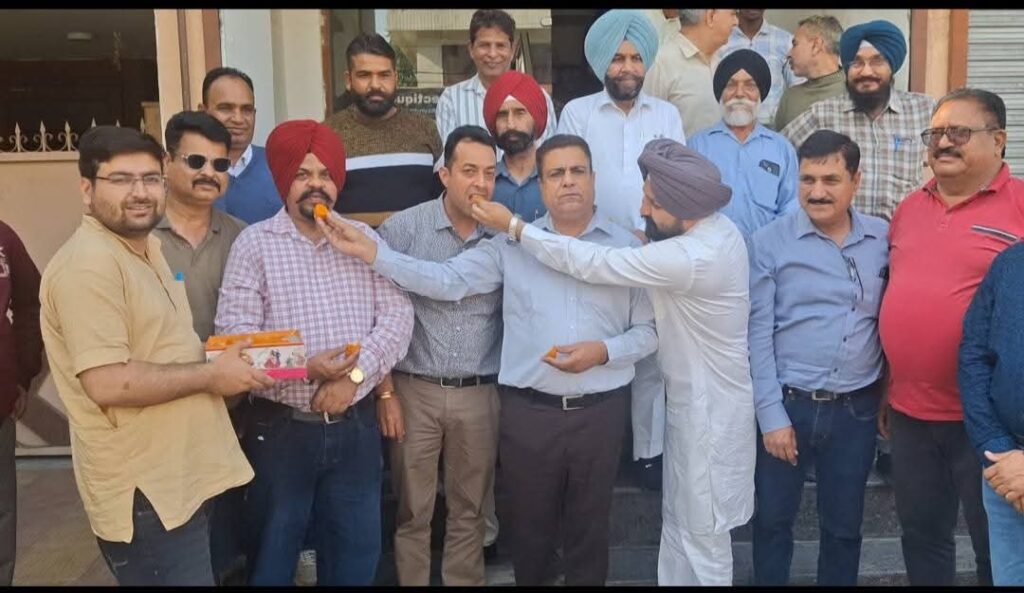 Rajpura, March 01 (Himanshu Harry): The joy of the acquittal of AAP national convener Arvind Kejriwal and former Delhi Chief Minister Manish Sisodia, who were made accused by the investigating agencies in the liquor scam by the Delhi court, was celebrated by the AAP leaders of Rajpura today by distributing laddus. The laddus were distributed today under the joint leadership of PSIDC Senior Vice Chairman Praveen Chhabra, Market Committee Banur Chairman Jasvir Singh Chanduan, Market Committee Rajpura Chairman Deepak Sood. On this occasion, slogans were raised in favor of AAP convener Kejriwal and in favor of AAP. On this occasion, the above leaders while talking to the journalists said that the ruling party had tried to put pressure on the agencies to smear the clean slate of honest political personalities Arvind Kejriwal and Manish Sisodia with corruption, which has been declared acquitted by the decision of the impartial judiciary, which is a slap in the face of the ruling party. This proves that the investigation agencies had tried to implicate AAP leaders in a false case at the behest of the ruling party. They said that the BJP is not happy with the growing political base of AAP in the country, therefore it wants to defame AAP leaders among the people by making all kinds of snares, but the people are so wise that they understand all the tricks of the BJP. On this occasion, Additional Advocate General Ravinder Singh, Munish Sood, Munish Batra, Jora Singh, Karnail Puri, Mahendra Singh Ganesh Nagar and many AAP leaders were present.