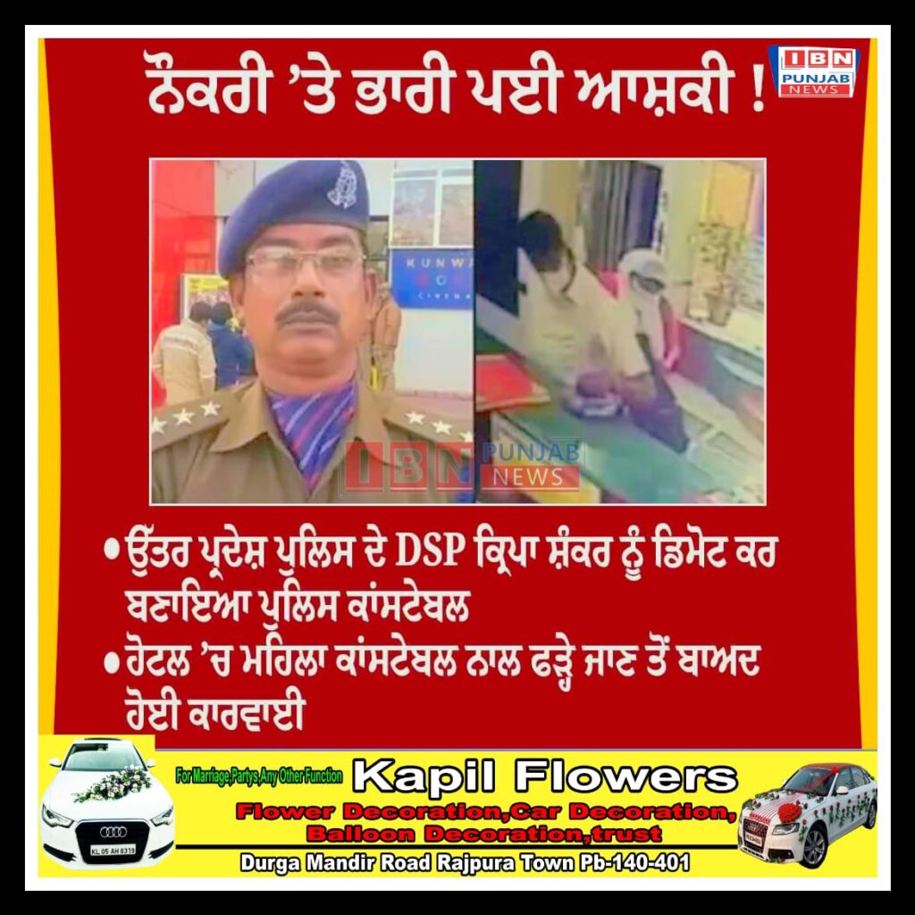 Action taken after DSP Kripa Shankar of U.P. was caught with a lady constable at Ashki Hotel while on duty.