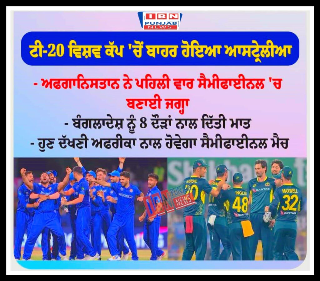 ਟੀ- 20 ਵਿਸ਼ਵ ਕੱਪ ‘ਚੋਂ ਬਾਹਰ ਹੋਇਆ ਆਸਟ੍ਰੇਲੀਆ ਅਫਗਾਨਿਸਤਾਨ ਨੇ ਪਹਿਲੀ ਵਾਰ ਸੈਮੀਫਾਇਨਲ ‘ਚ ਬਣਾਈ ਜਗਾ