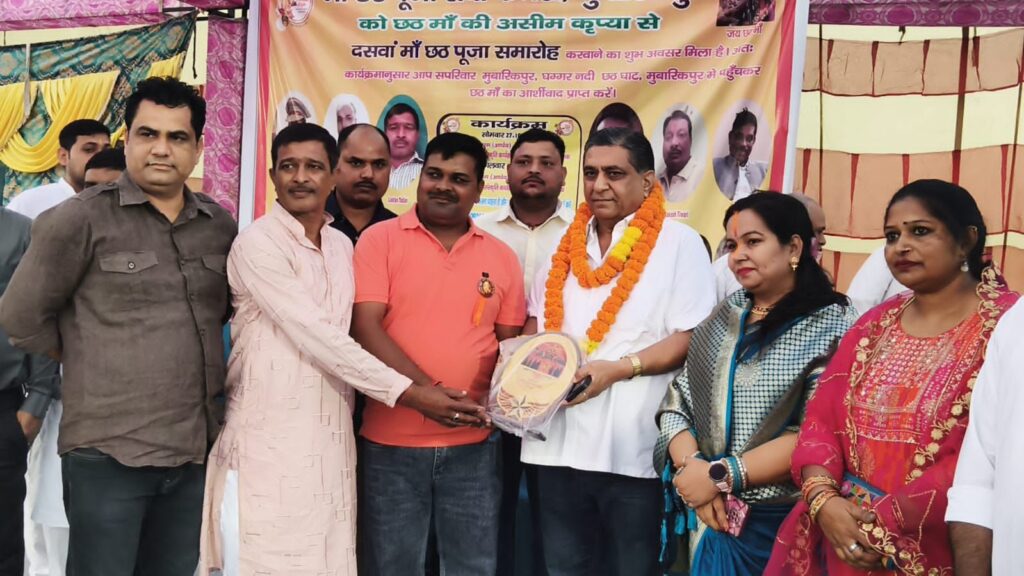 ਡੇਰਾਬੱਸੀ/ਜ਼ੀਰਕਪੁਰ 27 ਅਕਤੂਬਰ (ਹਿਮਾਂਸ਼ੂ ਹੈਰੀ): ਜ਼ੀਰਕਪੁਰ ਦੇ ਮੁਬਾਰਕਪੁਰ ਖੇਤਰ ਵਿੱਚ ਸਥਿਤ ਮਾਂ ਛੱਠ ਪੂਜਾ ਸੋਸਾਇਟੀ ਦੇ ਪ੍ਰੰਗਣ ਅਤੇ ਘੱਗਰ ਦਰਿਆ ਦੇ ਤਟ ‘ਤੇ ਅੱਜ ਛੱਠ ਪੂਜਾ ਦਾ ਭਵਿਆ ਆਯੋਜਨ ਸ਼ਰਧਾ ਤੇ ਆਸਥਾ ਦੇ ਮਾਹੌਲ ‘ਚ ਹੋਇਆ। ਇਸ ਮੌਕੇ ਭਾਜਪਾ ਆਗੂ ਸੰਜੀਵ ਖੰਨਾ ਮੁੱਖ ਅਤਿਥੀ ਵਜੋਂ ਸ਼ਾਮਲ ਹੋਏ। ਪ੍ਰੋਗਰਾਮ ‘ਚ ਪਹੁੰਚਣ ‘ਤੇ ਆਯੋਜਕਾਂ ਨੇ ਉਨ੍ਹਾਂ ਦਾ ਗਰਮਜੋਸ਼ੀ ਨਾਲ ਸਵਾਗਤ ਕੀਤਾ ਅਤੇ ਉਨ੍ਹਾਂ ਨੂੰ ਸਮ੍ਰਿਤੀ ਚਿੰਨ੍ਹ (ਮੇਮੈਂਟੋ) ਭੇਂਟ ਕਰਕੇ ਸਨਮਾਨਿਤ ਕੀਤਾ। ਇਸ ਮੌਕੇ ‘ਤੇ ਸੁਧੀਰ ਕਾਂਟੀਵਾਲ, ਸੁਮਿਤ ਕੁਮਾਰ, ਆਸ਼ੂ ਰਾਣੀ, ਮਨੀਸ਼ਾ ਸੌਰਭ ਅਤੇ ਸੰਤੋਸ਼ ਜੀ ਨੂੰ ਵੀ ਸੰਜੀਵ ਖੰਨਾ ਦੇ ਨਾਲ ਮੰਚ ‘ਤੇ ਸੱਦ ਕੇ ਸਨਮਾਨਿਤ ਕੀਤਾ ਗਿਆ। ਸਭ ਨੂੰ ਸਮ੍ਰਿਤੀ ਚਿੰਨ੍ਹ ਭੇਂਟ ਕਰਕੇ ਉਨ੍ਹਾਂ ਦੇ ਸ਼ਰਮ, ਸਮਰਪਣ ਅਤੇ ਸੇਵਾ ਭਾਵਨਾ ਦੀ ਕਦਰ ਕੀਤੀ ਗਈ। ਇਨ੍ਹਾਂ ਸਭ ਨੇ ਪੂਰੇ ਸਮਾਗਮ ਨੂੰ ਸੁਵਿਧਾਜਨਕ, ਸ਼ਾਂਤਮਈ ਅਤੇ ਭਗਤੀ ਭਾਵ ਨਾਲ ਪੂਰਨ ਬਣਾਉਣ ਵਿੱਚ ਮਹੱਤਵਪੂਰਣ ਭੂਮਿਕਾ ਨਿਭਾਈ। ਇਸ ਮੌਕੇ ਸੰਜੀਵ ਖੰਨਾ ਨੇ ਵਿਧੀ-ਵਿਧਾਨ ਨਾਲ ਛੱਠ ਮਾਤਾ ਦੀ ਪੂਜਾ-ਅਰਚਨਾ ਕੀਤੀ ਅਤੇ ਖੇਤਰ ਤੇ ਸਮਾਜ ਦੀ ਉੱਨਤੀ ਲਈ ਮੰਗਲ ਕਾਮਨਾਵਾਂ ਪ੍ਰਗਟ ਕੀਤੀਆਂ। ਉਨ੍ਹਾਂ ਕਿਹਾ ਕਿ ਛੱਠ ਪਾਰਵ ਸੂਰਜ ਉਪਾਸਨਾ, ਪ੍ਰਕਿਰਤੀ ਸੰਰੱਖਣ ਅਤੇ ਸਮਾਜਕ ਏਕਤਾ ਦਾ ਪ੍ਰਤੀਕ ਹੈ, ਜੋ ਭਾਰਤੀ ਸਭਿਆਚਾਰ ਦੀ ਅਸਲ ਪਛਾਣ ਹੈ। ਉਨ੍ਹਾਂ ਨੇ ਆਯੋਜਕਾਂ ਅਤੇ ਸ਼ਰਧਾਲੂਆਂ ਨੂੰ ਯਕੀਨ ਦਵਾਇਆ ਕਿ ਉਹ ਸੰਬੰਧਿਤ ਅਧਿਕਾਰੀਆਂ ਨਾਲ ਗੱਲ ਕਰਕੇ ਇੱਥੇ ਇੱਕ ਬਿਹਤਰ, ਸੁਰੱਖਿਅਤ ਅਤੇ ਵਿਵਸਥਿਤ ਘਾਟ ਦੇ ਨਿਰਮਾਣ ਲਈ ਪਹਿਲ ਕਰਨਗੇ, ਤਾਂ ਜੋ ਆਉਣ ਵਾਲੇ ਸਮਿਆਂ ਵਿੱਚ ਸ਼ਰਧਾਲੂਆਂ ਨੂੰ ਹੋਰ ਸੁਵਿਧਾਵਾਂ ਪ੍ਰਾਪਤ ਹੋ ਸਕਣ। ਘਾਟ ਅਤੇ ਸੋਸਾਇਟੀ ਪ੍ਰੰਗਣ ਨੂੰ ਰੰਗ–ਬਰੰਗੀਆਂ ਲਾਈਟਾਂ, ਦੀਵਿਆਂ, ਕੇਲੇ ਦੇ ਪੱਤਿਆਂ ਅਤੇ ਰਵਾਇਤੀ ਸਜਾਵਟ ਨਾਲ ਸੁਸ਼ੋਭਤ ਕੀਤਾ ਗਿਆ ਸੀ। ਸ਼ਰਧਾਲੂ ਇਸਤ੍ਰੀਆਂ ਅਤੇ ਪਰਿਵਾਰਾਂ ਨੇ ਪਾਰੰਪਰਿਕ ਪਹਿਰਾਵੇ ‘ਚ ਸੂਰਜ ਦੇਵਤਾ ਨੂੰ ਅਰਘ ਅਰਪਿਤ ਕੀਤਾ, ਜਿਸ ਨਾਲ ਪੂਰਾ ਮਾਹੌਲ ਭਗਤੀ ਅਤੇ ਆਧਿਆਤਮਿਕਤਾ ਨਾਲ ਭਰ ਗਿਆ। ਇਸ ਮੌਕੇ ਸੰਜੀਵ ਖੰਨਾ ਨੇ ਸੋਸਾਇਟੀ ਅਤੇ ਆਯੋਜਕਾਂ ਦੇ ਸਾਂਝੇ ਯਤਨਾਂ ਦੀ ਪ੍ਰਸ਼ੰਸਾ ਕਰਦਿਆਂ ਕਿਹਾ ਕਿ ਛੱਠ ਪਾਰਵ ਆਪਸੀ ਭਰਾਵਾਂ, ਅਨੁਸ਼ਾਸਨ ਅਤੇ ਸਭਿਆਚਾਰਕ ਮੁੱਲਾਂ ਦਾ ਸ਼ਾਨਦਾਰ ਪ੍ਰਤੀਕ ਹੈ, ਜਿਸਨੂੰ ਜੀਰਕਪੁਰ ਅਤੇ ਆਲੇ-ਦੁਆਲੇ ਦੇ ਲੋਕਾਂ ਨੇ ਵੱਡੇ ਉਤਸ਼ਾਹ ਅਤੇ ਸ਼ਰਧਾ ਨਾਲ ਮਨਾਇਆ।