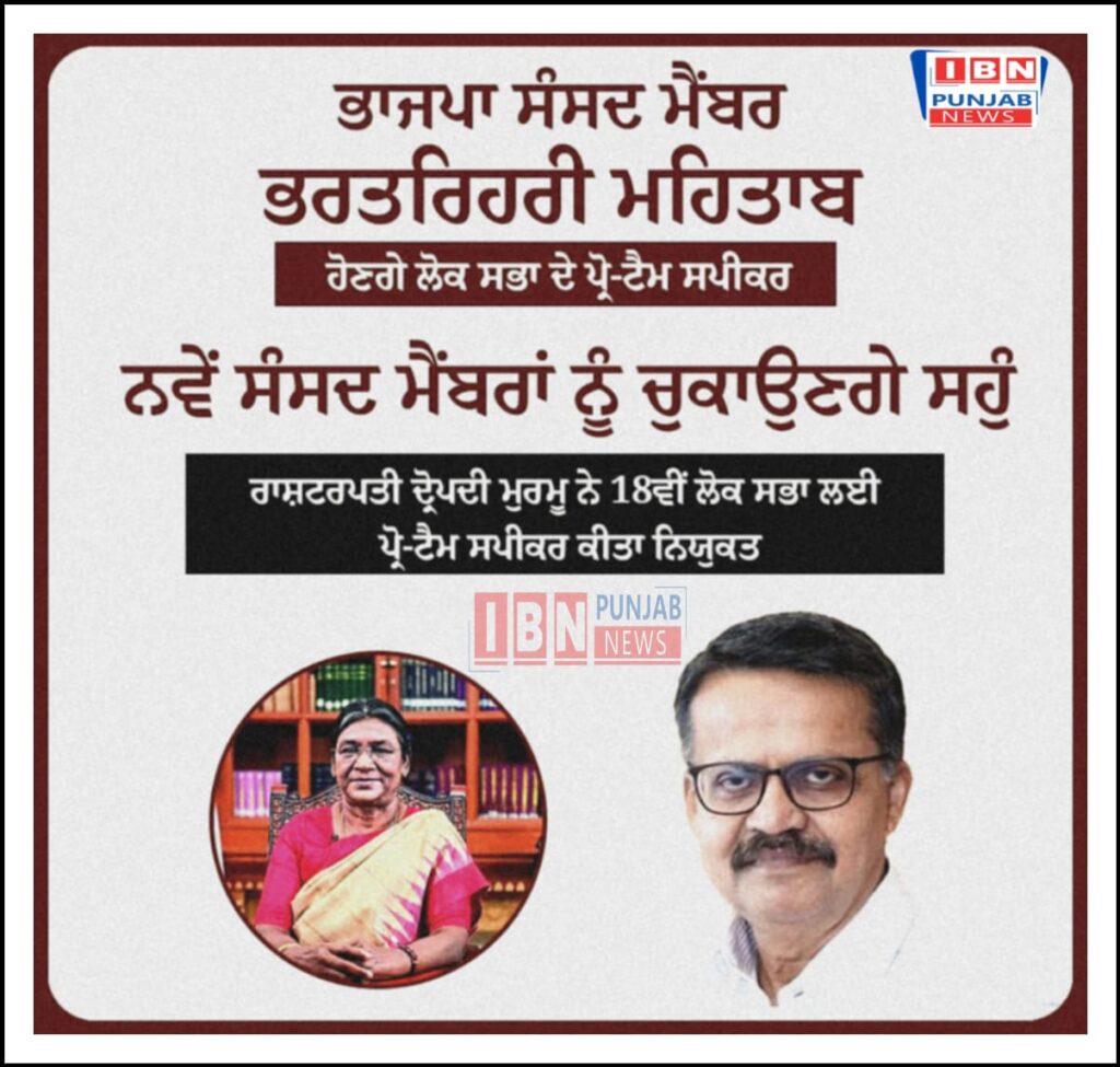 ਭਾਜਪਾ ਸੰਸਦ ਮੈਂਬਰ ਭਾਰਤਰਿਹਰੀ ਮਹਿਤਾਬ ਹੋਣਗੇ ਲੋਕ ਸਭਾ ਦੇ ਪ੍ਰੋ-ਟੈਮ ਸਪੀਕਰ ਨਵੇਂ ਸੰਸਦ ਮੈਬਰਾਂ ਨੂੰ ਚੁਕਾਉਣਗੇ ਸਹੁੰ