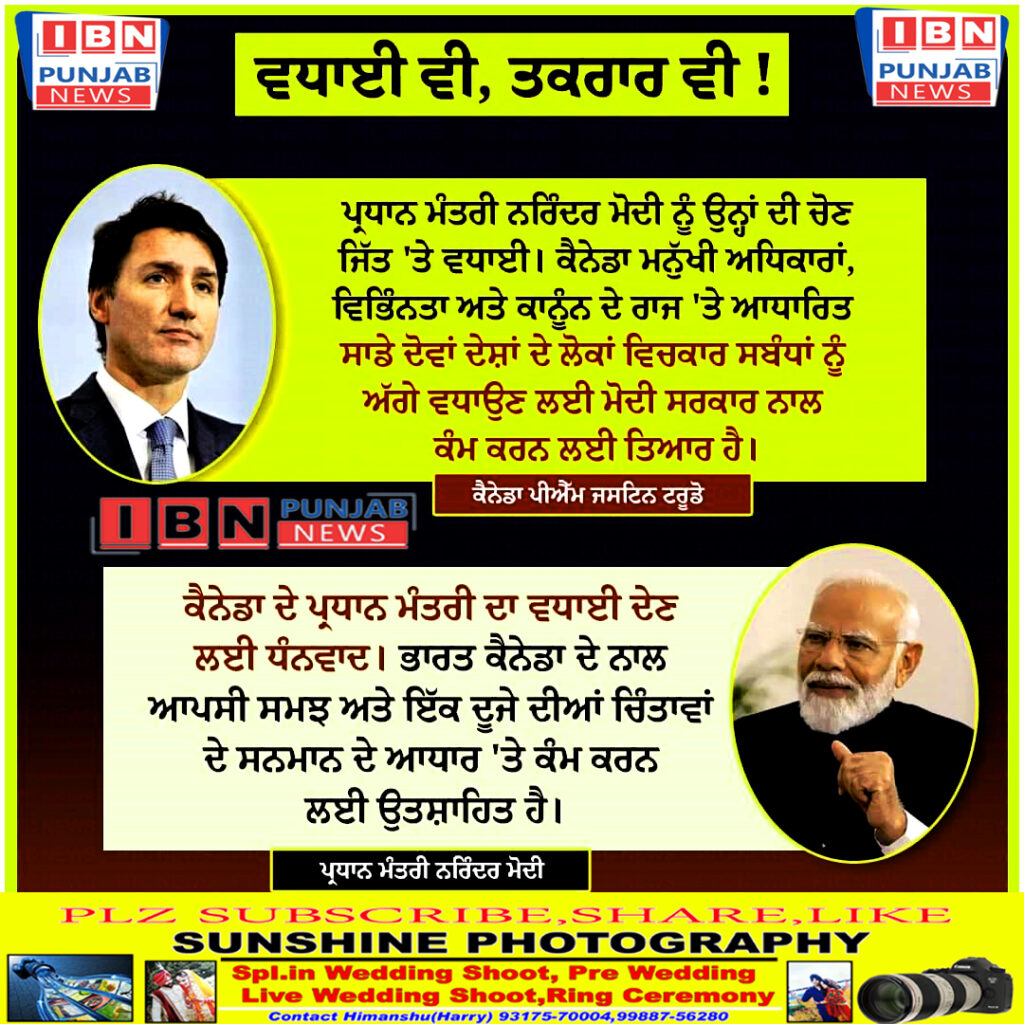 ਕੈਨੇਡਾ ਦੇ ਪ੍ਰਧਾਨ ਮੰਤਰੀ ਜਸਟਿਨ ਟਰੂਡੋ ਨੇ ਦਿੱਤੀ ਸੀ ਵਧਾਈ, 4 ਦਿਨਾਂ ਬਾਅਦ ਪ੍ਰਧਾਨ ਮੰਤਰੀ ਨਰਿੰਦਰ ਮੋਦੀ ਨੇ ਦਿੱਤਾ ਇਸ ਤਰ੍ਹਾਂ ਜਵਾਬ