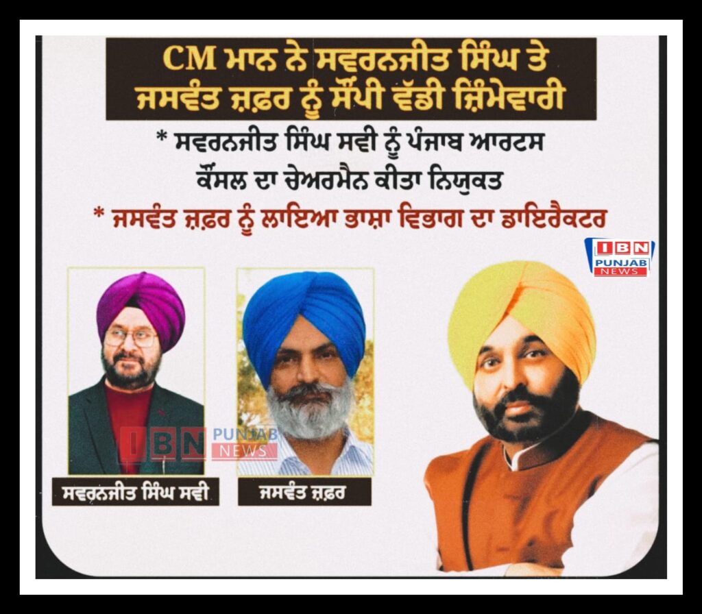 CM ਭਗਵੰਤ ਮਾਨ ਨੇ ਸਵਰਨਜੀਤ ਸਿੰਘ ਤੇ ਜਸਵੰਤ ਜਫ਼ਰ ਨੂੰ ਸੋਪੀਂ ਵੱਡੀ ਜਿੱਮੇਵਾਰੀ