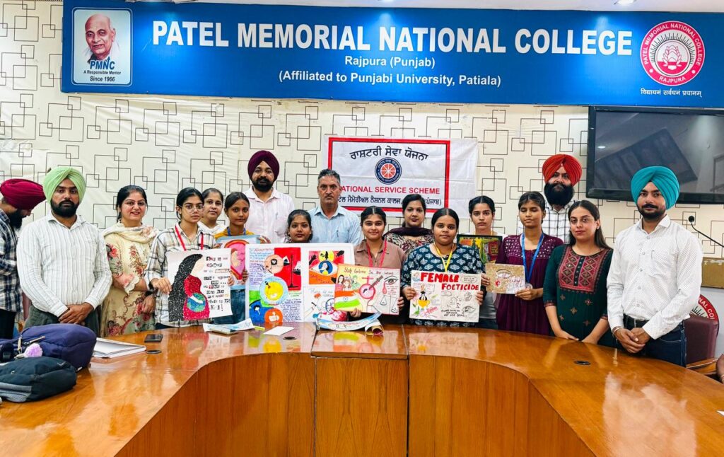 ਰਾਜਪੁਰਾ, 25 ਸਤੰਬਰ (ਹਿਮਾਂਸ਼ੂ ਹੈਰੀ): ਸਥਾਨਕ ਪਟੇਲ ਮੈਮੋਰੀਅਲ ਨੈਸ਼ਨਲ ਕਾਲਜ ਰਾਜਪੁਰਾ ਦੇ ਪ੍ਰਿੰਸੀਪਲ ਡਾ. ਚੰਦਰ ਪ੍ਰਕਾਸ਼ ਗਾਂਧੀ ਦੀ ਅਗਵਾਈ ਵਿੱਚ ਅਤੇ ਐਨ.ਐਸ.ਐਸ. ਦੇ ਪ੍ਰੋਗਰਾਮ ਅਫਸਰ ਡਾ. ਮਨਦੀਪ ਸਿੰਘ, ਡਾ. ਵੰਦਨਾ ਗੁੱਪਤਾ, ਪ੍ਰੋ. ਅਵਤਾਰ ਸਿੰਘ ਅਤੇ ਡਾ. ਗਗਨਦੀਪ ਕੌਰ, ਪ੍ਰੋ. ਦਲਜੀਤ ਸਿੰਘ ਅਤੇ ਪ੍ਰੋ. ਨੰਦਿਤਾ ਦੀ ਦੇਖ ਰੇਖ ਹੇਠ ਐਨ.ਐਸ. ਐਸ. ਦਿਵਸ ਮਨਾਇਆ ਗਿਆ। ਪ੍ਰੋਗਰਾਮ ਦੀ ਸ਼ੁਰੂਆਤ ਪ੍ਰਿੰਸੀਪਲ ਡਾ. ਚੰਦਰ ਪ੍ਰਕਾਸ਼ ਨੇ ਵਲੰਟੀਅਰਾਂ ਨੂੰ ਐਨ. ਐਸ. ਐਸ. ਦਿਵਸ ਦੀ ਵਧਾਈ ਦਿੱਤੀ ਅਤੇ ਉਨ੍ਹਾਂ ਨੂੰ ਸਮਾਜ ਸੇਵਾ ਲਈ ਪ੍ਰੇਰਤ ਕੀਤਾ। ਪ੍ਰੋਗਰਾਮ ਅਫਸਰ ਡਾ. ਵੰਦਨਾ ਗੁਪਤਾ ਨੇ ਐਨ. ਐਸ. ਐਸ. ਦੇ ਇਤਿਹਾਸ ਬਾਰੇ ਜਾਣਕਾਰੀ ਦਿੰਦੇ ਹੋਏ ਵਲੰਟੀਅਰਾਂ ਨੂੰ ਸੇਵਾ ਭਾਵਨਾ ਲਈ ਹਮੇਸ਼ਾ ਤਿਆਰ ਰਹਿਣ ਲਈ ਕਿਹਾ। ਡਾ. ਮਨਦੀਪ ਸਿੰਘ ਅਤੇ ਪ੍ਰੋ. ਅਵਤਾਰ ਸਿੰਘ ਨੇ ਐਨ. ਐਸ. ਐਸ. ਦੌਰਾਨ ਕੀਤੀਆਂ ਜਾਂਦੀਆਂ ਗਤੀਵਿਧੀਆਂ ਬਾਰੇ ਸੰਪੂਰਨ ਜਾਣਕਾਰੀ ਦਿੱਤੀ। ਇਸ ਮੌਕੇ ਵਲੰਟੀਅਰਾਂ ਦੇ ‘ਭਰੂਣ ਹੱਤਿਆ’ ਵਿਸ਼ੇ ਉਤੇ ਵੱਖ ਵੱਖ ਮੁਕਾਬਲੇ ਕਰਵਾਏ ਗਏ। ਕੋਲਾਜ ਮੇਕਿੰਗ ਵਿੱਚ ਮਨਜੀਤ ਕੌਰ ਅਤੇ ਪ੍ਰਿਅੰਕਾ ਜੇਤੂ ਰਹੇ, ਸਲੋਗਨ ਮੁਕਾਬਲਿਆਂ ਵਿੱਚ ਦਿਕਸ਼ਾ, ਅਰਸ਼ਦੀਪ ਕੌਰ, ਭਵਨੀਤ ਕੌਰ ਅਤੇ ਗੁਰਮਨਦੀਪ ਕੌਰ ਜੇਤੂ ਰਹੇ ਅਤੇ ਇਸੇ ਤਰ੍ਹਾਂ ਪੋਸ਼ਟਰ ਬਨਾਉਣ ਦੇ ਮੁਕਾਬਲੇ ਵਿੱਚ ਪ੍ਰੀਤੀ ਧਿਮਾਨ, ਸਵੀਟੀ, ਵਿਸ਼ਾਲੀ ਅਤੇ ਖੁਸ਼ੀ ਜੇਤੂ ਰਹੇ। ਜੇਤੂ ਵਲੰਟੀਅਰਾਂ ਨੂੰ ਪ੍ਰਬੰਧਕਾਂ ਵਲੋਂ ਮੈਡਲ ਦੇ ਕੇ ਸਨਮਾਨਿਤ ਕੀਤਾ ਗਿਆ। ਡਾ. ਗਗਨਦੀਪ ਕੌਰ ਅਤੇ ਪ੍ਰੋ. ਨੰਦਿਤਾ ਨੇ ਆਏ ਮਹਿਮਾਨਾ ਦਾ ਧੰਨਵਾਦ ਕੀਤਾ।ਇਸ ਮੌਕੇ ਡਾ. ਗੁਰਜਿੰਦਰ ਸਿੰਘ , ਪ੍ਰੋ. ਸੌਮੀਆ ਅਤੇ ਲਗਭਗ ਇੱਕ ਸੌ ਪੰਜਾਹ ਵਲੰਟੀਅਰ ਸ਼ਾਮਿਲ ਸਨ।