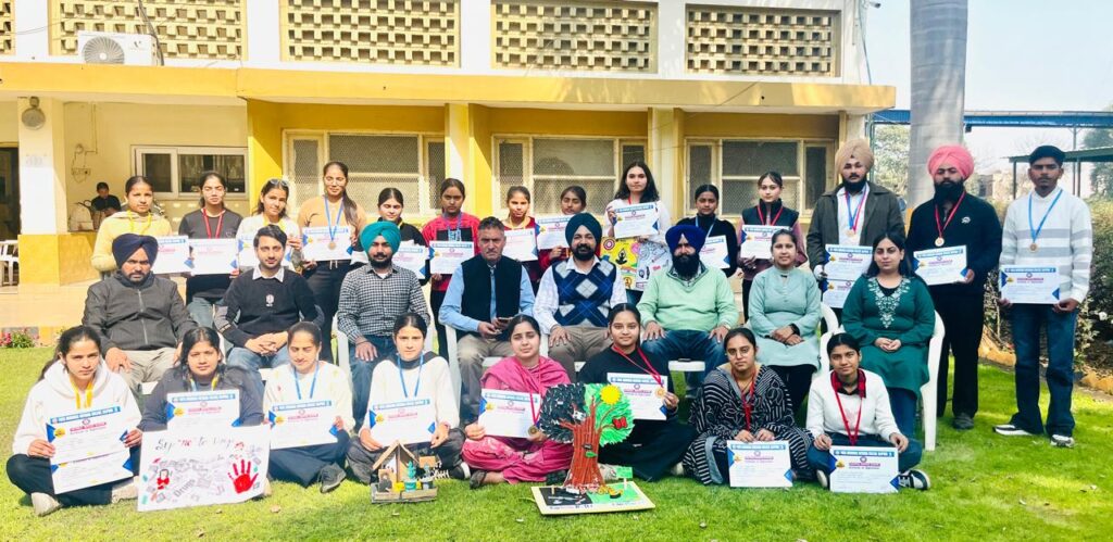 Rajpura, February 17 (Himanshu Harry): Under the leadership of the Principal of the local Patel Memorial National College Rajpura, Dr. Chandra Prakash Gandhi and with the joint support of NSS Red Ribbon Club and NACO, a one-day camp was organized and celebrated under the supervision of Program Officer Dr. Mandeep Singh, Dr. Vandana Gupta, Prof. Avtar Singh, Dr. Gagandeep Kaur, Prof. Nandita and Prof. Daljit Singh. In which the volunteers’ competitions of Mehndi, Slogan, Collage, Painting, Bestout of Waste, Poster and Rangoli were organized. At the beginning of this program, Principal Dr. Chandra Prakash Gandhi blessed the volunteers and motivated them to participate in maximum activities. After this, competitions were organized for the volunteers, during which Muskan won first place in Mehndi, Khushi won second place and Sudha won third place. Along with this, in Best Out of Waste, Harshpreet and Jashanpreet got first place, Priyanka and Manpreet got second place. In Rangoli, Muskan got first place, Sonam got second place and Karishma, Moni got third place. In Collage Making, Karanpreet got first place, Diksha Vadera got second place and Khushi and Harman got third place. In Poster Making, Simrat got first place, Gurpreet got second place and Diksha Vadera got third place. In Slogan, Ramanpreet got first place, Kirti got second place and Sunaina and Preeti got third place. On this occasion, the winning volunteers were honored by the organizers with medals and certificates. On this occasion, Dr. Gurjinder Singh, Dr. Harinderpal Kaur, Dr. Amanpreet Kaur, Prof. Bhavana and Prof. Rajan and all the volunteers were present.