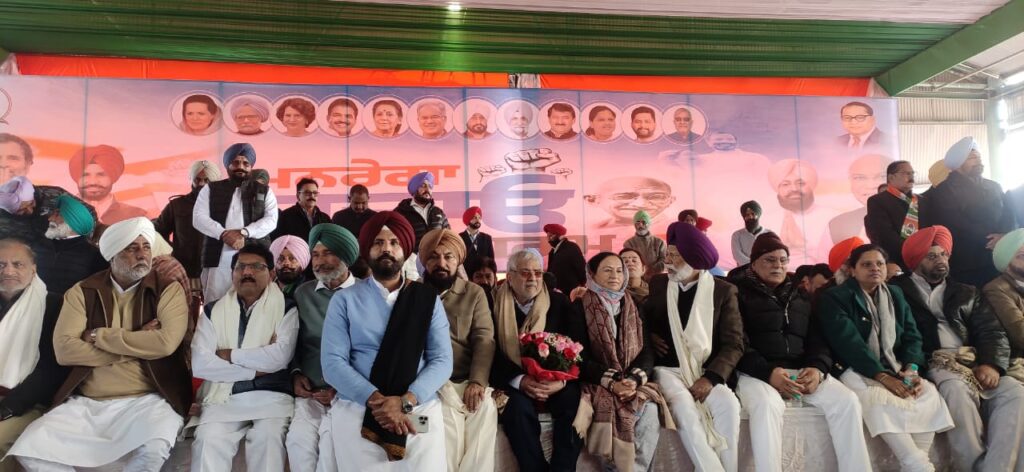 Rajpura, January 10 (Himanshu Harry): Today, a gathering was held in the grain market of Rajpura under the MGNREGA Bachao Sangram by former MLA Hardial Singh Kamboj. In which people present from different constituencies listened to the speeches of their leaders who had come, in particular, former Chief Minister of Chhattisgarh Bhupesh Baghel made the common people aware under the MGNREGA Bachao Sangram and called changing the name of NREKA an insult to Mahatma Gandhi. During this, LOP leader Partap Singh Bajwa, who was present, also said that the scheme of the central government including the Punjab government, the scheme of the Jee Ram Ji scheme and the changes in it are a violation of the rights of the working class people. A government that does not already have money, how will it now give money with a ratio of 60:40 is a big question. On this occasion, he spoke to the media and said that on the 15th, Chief Minister Mann is being talked about appearing at Akal Takht Sahib, but the questions and answers will be held later, first Bhagwant Mann should answer the questions of the people. On this occasion, former constituency MLA Hardial Singh Kamboj, former MLA Madan Lal Jalalpur, Sadhu Singh Dharam Sot, Punjab Congress Party President Amarinder Singh Raja Warring, Vishnu Sharma, Gursharan Singh Randhawa, Aruna Chaudhary Dr. Amar Singh, Member of Parliament from Patiala Dr. Dharamvir Gandhi, Pratap Singh Bajwa, Sukhpal Khaira, Gagandeep Singh Jolly Jalalpur, Nirbaye Militi Kamboj Jaganandan Gupta and many Congress workers and office bearers were present.