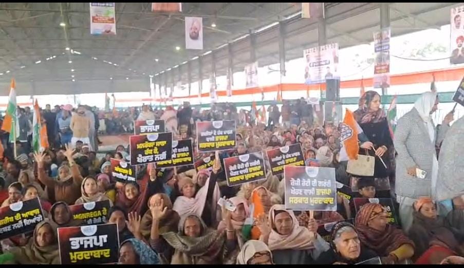 राजपुरा, 10 जनवरी (हिमांशु हैरी): आज राजपुरा की अनाज मंडी में पूर्व MLA हरदयाल सिंह कंबोज की तरफ से MGNREGA बचाओ संग्राम के तहत एक सभा हुई। जिसमें अलग-अलग विधानसभा क्षेत्रों से आए लोगों ने आए अपने नेताओं के भाषण सुने, खास तौर पर छत्तीसगढ़ के पूर्व मुख्यमंत्री भूपेश बघेल ने MGNREGA बचाओ संग्राम के तहत आम लोगों को जागरूक किया और NREKA का नाम बदलने को महात्मा गांधी का अपमान बताया। इस दौरान मौजूद LOP नेता प्रताप सिंह बाजवा ने भी कहा कि पंजाब सरकार समेत केंद्र सरकार की स्कीम, जी राम जी स्कीम और उसमें किए गए बदलाव मेहनतकश लोगों के अधिकारों का हनन है। जिस सरकार के पास पहले से ही पैसा नहीं है, वह अब 60:40 के अनुपात से पैसा कैसे देगी, यह बड़ा सवाल है। इस मौके पर उन्होंने मीडिया से बात करते हुए कहा कि 15 तारीख को मुख्यमंत्री मान के अकाल तख्त साहिब पर पेश होने की बात कही जा रही है, लेकिन सवाल-जवाब बाद में होंगे, पहले भगवंत मान लोगों के सवालों का जवाब दें। इस मौके पर हलका के पूर्व MLA हरदयाल सिंह कंबोज, पूर्व MLA मदन लाल जलालपुर, साधु सिंह धर्म सोत, पंजाब कांग्रेस पार्टी के अध्यक्ष अमरिंदर सिंह राजा वड़िंग, विष्णु शर्मा, गुरशरण सिंह रंधावा, अरुणा चौधरी डॉ. अमर सिंह, पटियाला से सांसद डॉ. धर्मवीर गांधी, प्रताप सिंह बाजवा, सुखपाल खैरा, गगनदीप सिंह जॉली जलालपुर, निर्भय मिलित कंबोज जगनंदन गुप्ता समेत कई कांग्रेस कार्यकर्ता और पदाधिकारी मौजूद थे।