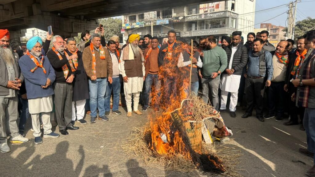 जीरकपुर में AAP नेता आतिशी मार्लेना का पुतला जलाया गया, गुरु साहिबाना के खिलाफ अपमानजनक टिप्पणी को लेकर BJP का कड़ा विरोध किया गया