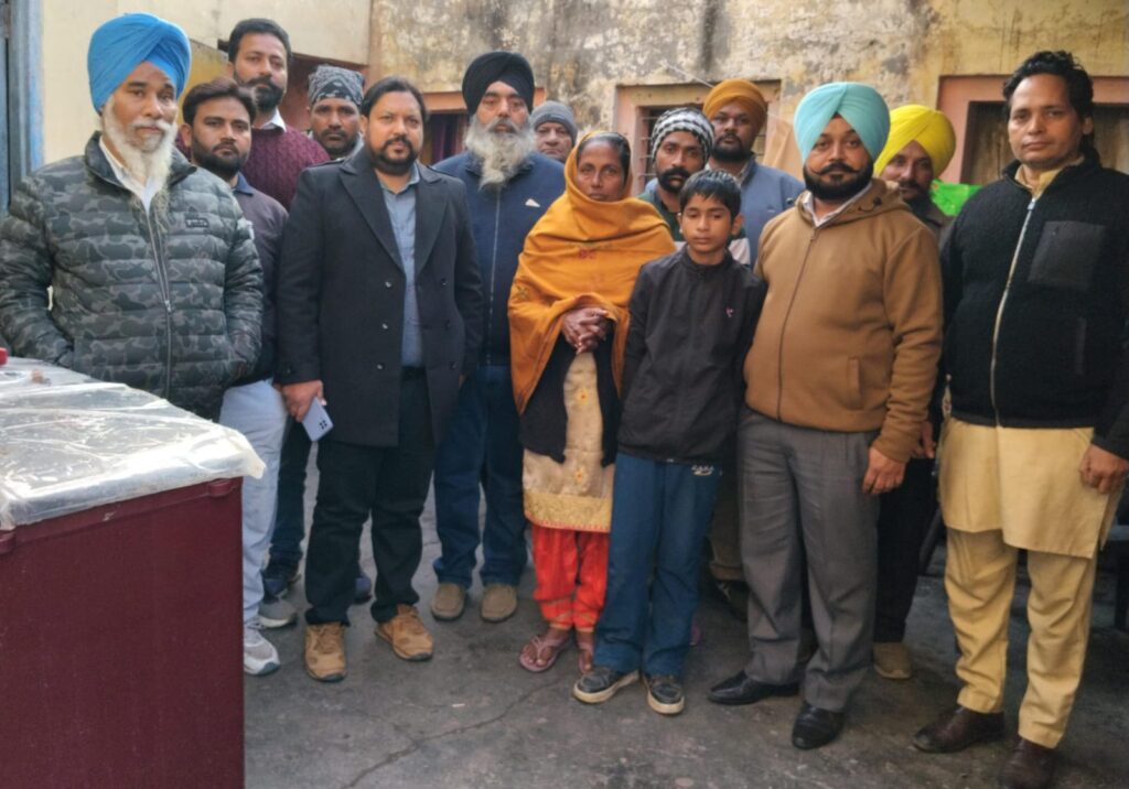 Rajpura, January 10 (Himanshu Harry): In the focal point here, a few days ago, two vehicles, one Thar and one Alkajagar, were set on fire by an unknown person and the dowry belongings of a girl from a poor family were also burnt to ashes in the fire, which also caused huge losses to the poor family. In this regard, Jai Bhim Manch leaders General Secretary Gurdarshan Singh Punia and Gurcharan Singh raised this issue and Jai Bhim Manch went to the spot and provided financial assistance to the needy family. On this occasion, the President of the Manch Sukhjinder Sukhi, Baba Barjinder Singh Parwana, President Damdami Taksal Rajpura, Senior Chairman Gurpreet Singh Dhamoli, Kirat Sehra, Darshan Khan, Vijay Kumar, Gurnam Singh, Naresh Kumar, Santosh Sukha, Pappu Kumar and his colleagues were present.