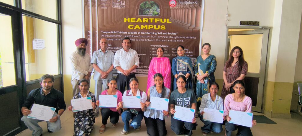 Rajpura, April 20 (Himanshu Harry): A six-day certified program HELM (Heartfulness Enabled for Leadership Mastery) was successfully conducted at Patel Institute of Management and Technology (PIMT) Rajpura under the guidance of Director Professor Rajiv Bahia. The program was coordinated by Professor Jyoti and the Heartfulness Organization team, in which Smt. Sangeeta, Smt. Gurjot Kaur and Smt. Baljit Kaur were the main contributors. The sessions focused on holistic development, emotional well-being and life management skills, which benefited the students and participants throughout the program. The closing ceremony marked the successful completion of the six-day program. During which certificates were distributed by Professor Rajiv Bahia along with the members of the Heartfulness team. Special contributors present at the event included Mr. Balwinder Singh, Smt. Gurjot Kaur, Smt. Sangeeta and Mr. Raghunath Ji. Prof. Harpreet Kaur and Prof. Kiranpreet Kaur was also present. The program received positive feedback from the participants and highlighted the importance of integrating mindfulness and emotional intelligence in education.