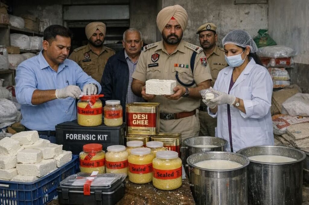 ਜੀਰਕਪੁਰ ਭੱਬਾਤ ਦੇ ਗਡਾਉਨ ਏਰੀਆ ਚੋ ਹੈਲਥ ਡਿਪਾਰਟਮੈਂਟ ਦੀ ਟੀਮ ਨੇ ਪੁਲੀਸ ਪਾਰਟੀ ਦੇ ਸਹਿਯੋਗ ਨਾਲ ਨਕਲੀ ਘੀ ਅਤੇ ਪਨੀਰ ਦੀ ਫੈਕਟਰੀ ਚੋ ਛਾਪਾ ਮਾਰਕੇ ਭਾਰੀ ਮਾਤਰਾ ਚੋ ਦੇਸੀ ਘੀ ਅਤੇ ਨਕਲੀ ਪਨੀਰ ਅਤੇ ਨਕਲੀ ਦੁੱਧ ਦੀ ਖੇਪ ਕੀਤੀ ਬਰਾਮਦ ਦੇਸੀ ਘੀ ਤੇ ਪਨੀਰ ਦੁੱਧ ਇਹਨਾ ਸੈਪਲਾ ਨੂੰ ਲੈਬ ਵਿੱਚ ਭੇਜ ਕੇ ਰਿਪੋਰਟ ਆਣ ਤੇ ਬਣਦੀ ਕਾਨੂੰਨੀ ਕਾਰਵਾਈ ਕੀਤੀ ਜਾਵੇਗੀ