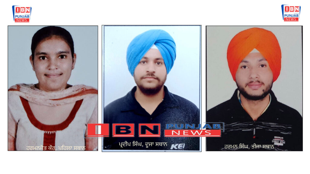 ਵਿੱਦਿਆਰਥੀ ਹਰਮਨਪ੍ਰੀਤ ਕੌਰ ਨੇ 82% ਅੰਕ ਲੈਕੇ ਪਹਿਲਾ ਅਤੇ ਪ੍ਰਦੀਪ ਸਿੰਘ ਨੇ 80% ਅੰਕ ਲੈਕੇ ਦੂਜਾ ਅਤੇ ਹਰਮਨ ਸਿੰਘ ਨੇ 72% ਅੰਕ ਲੈਕੇ ਤੀਜਾ ਸਥਾਨ ਕੀਤਾ ਹਾਸਲ