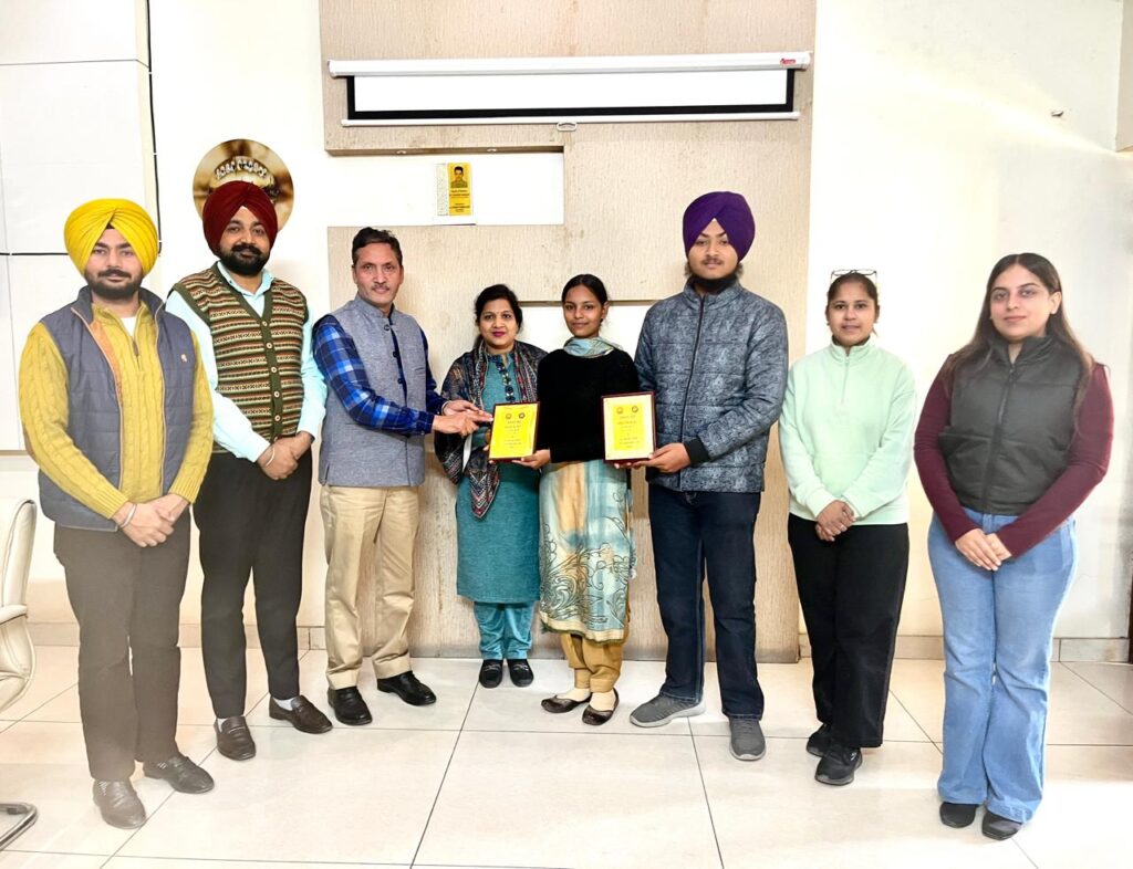 Rajpura, December 08 (Himanshu Harry): Under the leadership of the Principal of the local Patel Memorial National College, Dr. Chandra Prakash and NSS Program Officers Dr. Mandeep Singh, Dr. Vandana Gupta, Prof. Avtar Singh, Dr. Gagandeep Kaur and Prof. Nandita, two volunteers of the department, Amanpreet Kaur and Manvinder Singh, were honored with mementos on their return from the North Zone Pre-RD Camp. On this occasion, the NSS Program Officers informed that the North Zone Pre-RD Camp was held from November 21 to 30 at Chitkara University Rajpura, Punjab, in which 200 volunteers from Punjab, Haryana, Himachal, Jammu and Kashmir, Leh Ladakh, Chandigarh, Delhi and Rajasthan participated. Out of which four boys and four girls volunteers for Punjab will be selected for the Republic Day Parade in Delhi. All the volunteers were present on this occasion.