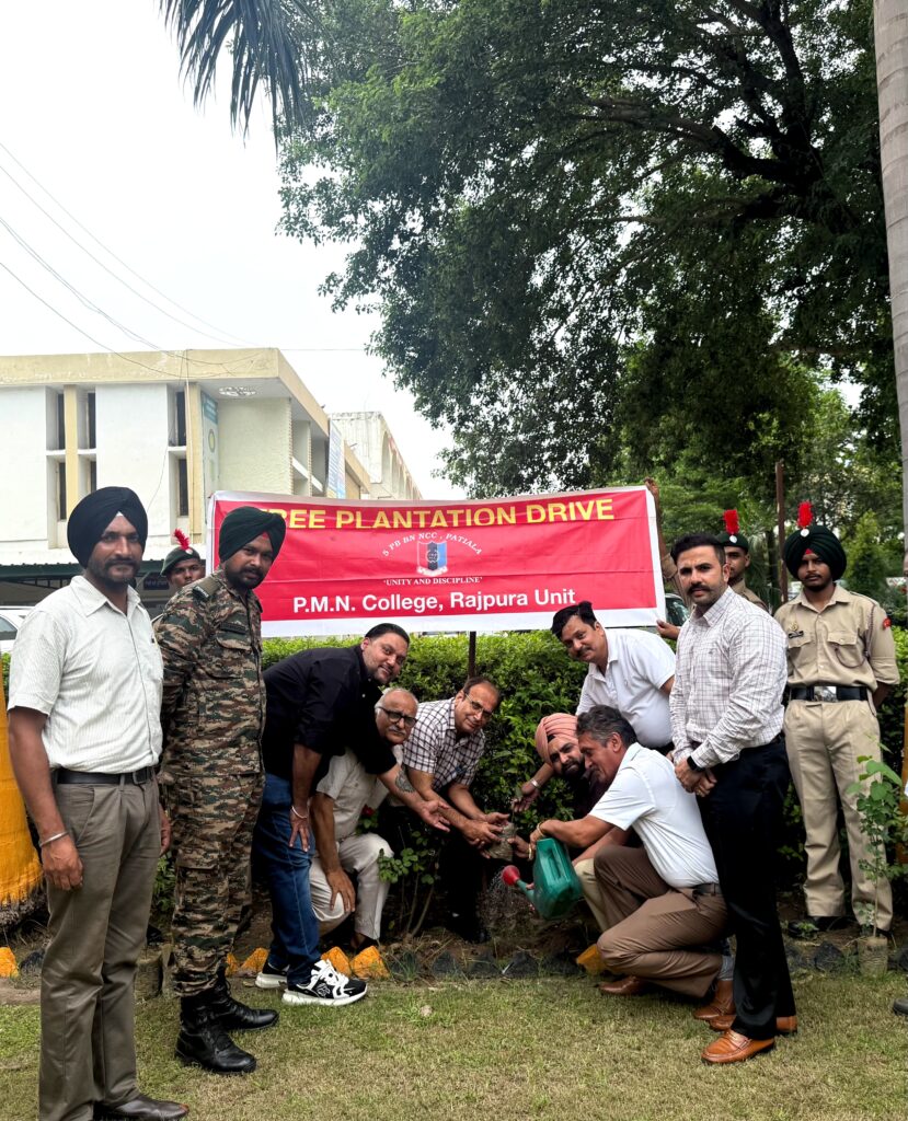ਰਾਜਪੁਰਾ,20 ਜੁਲਾਈ (ਹਿਮਾਂਸ਼ੂ ਹੈਰੀ) ਸਥਾਨਕ ਪਟੇਲ ਮੈਮੋਰੀਅਲ ਨੈਸ਼ਨਲ ਕਾਲਜ ਵਿਖ਼ੇ 5 ਪੰਜਾਬ ਬਟਾਲੀਅਨ ਐਨ.ਸੀ.ਸੀ. ਪਟਿਆਲਾ ਤੋਂ ਕਰਨਲ ਸੰਦੀਪ ਰੌਏ, ਲੈਫਟੀਨੈਂਟ ਡਾ. ਜੈਦੀਪ ਸਿੰਘ ਅਤੇ ਹੌਲਦਾਰ ਹਰਦੀਪ ਸਿੰਘ ਦੀ ਅਗਵਾਈ ਵਿੱਚ ਕਾਲਜ ਵਿੱਚ 100 ਦੇ ਕਰੀਬ ਫ਼ਲਦਾਰ ਅਤੇ ਛਾਂਦਾਰ ਬੂਟੇ ਲਗਾਏ। ਪਟੇਲ ਮੈਨੇਜਮੈਂਟ ਸੋਸਾਇਟੀ ਦੇ ਪ੍ਰਧਾਨ ਸ਼੍ਰੀ ਦੇਵਕੀ ਨੰਦਨ, ਵਾਈਸ ਪ੍ਰਧਾਨ ਸ. ਹਰਪ੍ਰੀਤ ਸਿੰਘ ਦੂਆ, ਜਨਰਲ ਸੈਕਰੇਟਰੀ ਸ. ਅਮਨਜੋਤ ਸਿੰਘ, ਫ਼ਾਇਨਾਂਸ ਸੈਕਰੇਟਰੀ ਸ਼੍ਰੀ ਰਿਤੇਸ਼ ਬਾਂਸਲ ਅਤੇ ਸੈਕਰੇਟਰੀ ਸ਼੍ਰੀ ਵਿਜੇ ਆਰਿਆ ਨੇ ਉੱਚੇਚੇ ਤੌਰ ਤੇ ਇਸ ਸਮਾਰੋਹ ਵਿੱਚ ਸ਼ਿਰਕਤ ਕੀਤੀ| ਇਨ੍ਹਾਂ ਆਏ ਹੋਏ ਮਹਿਮਾਨਾਂ ਨੇ ਪ੍ਰਿੰਸੀਪਲ, ਸਟਾਫ਼ ਅਤੇ ਬੱਚਿਆਂ ਨੂੰ ਇਸ ਮਹਾਨ ਸਮਾਜਿਕ-ਵਾਤਾਵਰਣਿਕ ਭਲਾਈ ਦੇ ਕੰਮ ਲਈ ਮੁਬਾਰਕਾਂ ਦਿੱਤੀਆਂ। ਉਨ੍ਹਾਂ ਸਾਰਿਆਂ ਨੇ ਸਟਾਫ਼ ਅਤੇ ਬੱਚਿਆਂ ਨੂੰ ਵਾਤਾਵਰਣ ਨੂੰ ਸਾਫ਼ ਸੁਥਰਾ ਬਣਾਉਣ ਦੇ ਮਕਸਦ ਨਾਲ ਹੋਰ ਵੀ ਖ਼ਾਲੀ ਥਾਵਾਂ ਤੇ ਬੂਟੇ ਲਗਾਉਣ ਲਈ ਪ੍ਰੇਰਿਤ ਕੀਤਾ।ਪ੍ਰਿੰਸੀਪਲ ਡਾ. ਚੰਦਰ ਪ੍ਰਕਾਸ਼ ਨੇ ਆਏ ਹੋਏ ਆਰਮੀ ਅਫ਼ਸਰਾਂ ਅਤੇ ਮੈਨੇਜਮੈਂਟ ਸੋਸਾਇਟੀ ਦੇ ਅਹੁਦੇਦਾਰਾਂ ਦਾ ਧੰਨਵਾਦ ਕੀਤਾ।