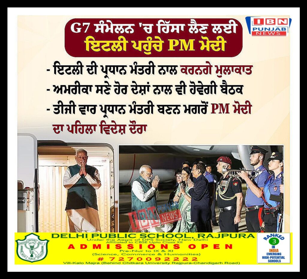 G7 ਸੰਮੇਲਨ ‘ਚ ਹਿੱਸਾ ਲੈਣ ਲਈ ਇਟਲੀ ਪਹੁੰਚੇ PM ਮੋਦੀ