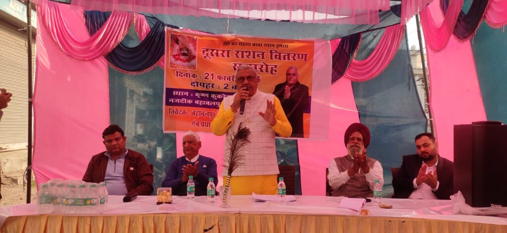 Rajpura, February 24 (Himanshu Harry): Bahawalpur Welfare Federation organized its second ration distribution ceremony under the leadership of President Krishan Kumar Kukreja. On this occasion, ration was distributed to 51 needy families. President Krishan Kumar Kukreja said that the first ration distribution ceremony of the organization was held on January 26 last month. He said that ration was distributed to 26 needy families on January 26, while now, a month later in February, ration has been distributed to 51 needy individuals. He said that the aim of the organization is to serve the needy in the society, and he is happy that the federation is continuously helping the needy and delivering ration to maximum homes. On this occasion, President Krishan Kumar Kukreja appealed to all the families receiving ration to knead the flour and prepare food using the ration, taking the name of Baba Shyam, so that the welfare of all can be ensured while remembering Shri Khatu Shyam Baba. After this ceremony, a langar was also arranged, where all the attendees partook of the prasad. Representatives of the Brahmin community and priests were present as the chief guests in this ceremony. Bahawalpur Mahasangh Chairman Inder Mehta, Pritam Singh, Sahil Kukreja, Charanjit Channi Kapoor and many other dignitaries were also present. The ceremony ended with a message of social harmony and service.