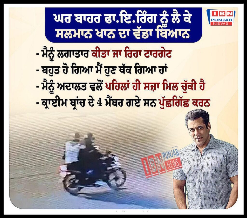 ਸਲਮਾਨ ਖਾਨ ਦੇ ਘਰ ਦੇ ਬਾਹਰ ਹੋਈ ਫਾਇਰਿੰਗ ਨੂੰ ਲੈ ਕੇ ਸਲਮਾਨ ਖਾਨ ਦਾ ਵੱਡਾ ਬਿਆਨ
