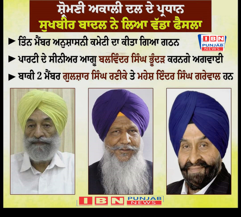 Shiromani Akali Dal president Sukhbir Singh Badal took a big decision and formed a three-member disciplinary committee