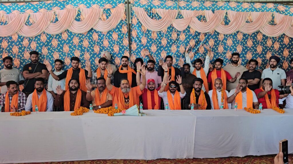 Rajpura, April 13 (Himanshu Harry): Shiv Sena Hind and Rashtriya Gau Raksha Dal today jointly joined hundreds of youth from Rajpura under the leadership of Rajiv Kukreja with Shiv Sena Hind. Giving information in this regard, Shiv Sena Hind President Nishat Sharma said that in today’s time, we Hindus really need to come together. So that we can protect the cow mother as one. He directly warned the cow smugglers that you will be put behind bars soon. He also warned the government that if appropriate steps are not taken for cow wealth, he will soon go to Delhi and stage a protest. In today’s special program, Nishat Sharma also specially honored the warriors who protect the cow.