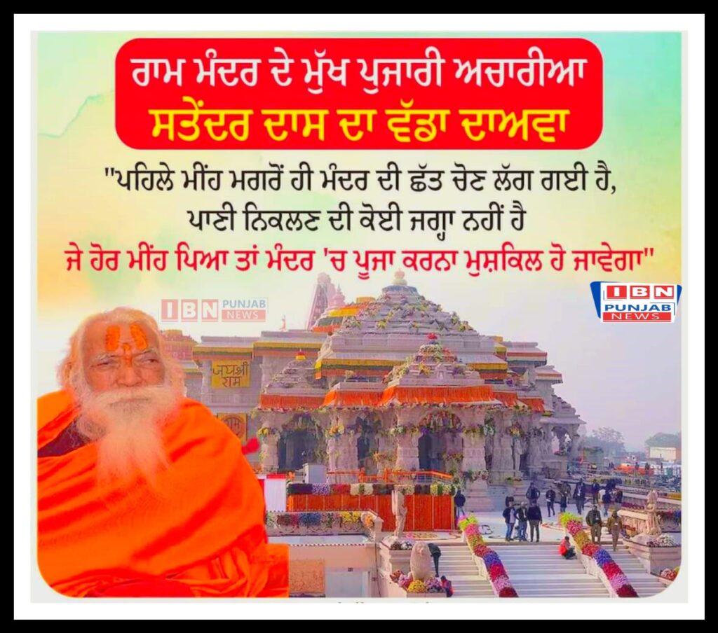 The big claim of Acharya Satendra Das, the chief priest of the Ram temple, is that the roof of the temple has started leaking after the first rain and there is no way for water to come out.