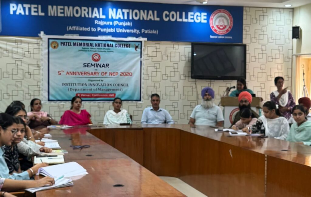 ਰਾਜਪੁਰਾ,23 ਅਗਸਤ(ਹਿਮਾਂਸ਼ੂ ਹੈਰੀ):ਸਥਾਨਕ ਪਟੇਲ ਮੈਮੋਰੀਅਲ ਨੈਸ਼ਨਲ ਕਾਲਜ ਦੇ ਮੈਨੇਜਮੈਂਟ ਵਿਭਾਗ ਨੇ ਰਾਸ਼ਟਰੀ ਸਿੱਖਿਆ ਨੀਤੀ (ਐਨ.ਈ.ਪੀ) ਦੀ 5ਵੀਂ ਵਰ੍ਹੇਗੰਢ ਮਨਾਈ ਜਿਸ ਵਿੱਚ ਰਾਸ਼ਟਰੀ ਸਿੱਖਿਆ ਨੀਤੀ ਅਤੇ ਭਾਰਤ ਵਿੱਚ ਉੱਚ ਸਿੱਖਿਆ ਦੇ ਪ੍ਰਭਾਵ ਨੂੰ ਉਜਾਗਰ ਕਰਨ ਬਾਰੇ ਇੱਕ ਵਿਸ਼ੇਸ਼ ਸੈਸ਼ਨ ਦਾ ਆਯੋਜਨ ਕੀਤਾ ਗਿਆ। ਪ੍ਰੋਗਰਾਮ ਦੀ ਸ਼ੁਰੂਆਤ ਪ੍ਰਿੰਸੀਪਲ ਡਾ. ਚੰਦਰ ਪ੍ਰਕਾਸ਼ ਗਾਂਧੀ ਅਤੇ ਵਿਭਾਗ ਮੁਖੀ ਡਾ. ਕੁਲਵਿੰਦਰ ਕੌਰ ਦੀ ਅਗਵਾਈ ਹੇਠ ਕੀਤੀ ਗਈ। ਜਿਸ ਵਿੱਚ ਅਧਿਆਪਕਾਂ ਅਤੇ ਵਿਦਿਆਰਥੀਆਂ ਦੀ ਸਰਗਰਮ ਭਾਗੀਦਾਰੀ ਨੂੰ ਆਯੋਜਿਤ ਕੀਤਾ ਗਿਆ। ਇਸ ਮੌਕੇ ਸੰਬੋਧਨ ਹੁੰਦਿਆਂ ਡਾ. ਅਮਿਤਾ ਕੌਸ਼ਲ ਅਤੇ ਪ੍ਰੋ. ਮਮਤਾ ਸ਼ਰਮਾ ਨੇ ਸਿੱਖਿਆ-ਸਿਖਲਾਈ ਪ੍ਰਕਿਰਿਆਵਾਂ ਨੂੰ ਮੁੜ ਆਕਾਰ ਦੇਣ, ਹੁਨਰ-ਅਧਾਰਤ ਸਿੱਖਿਆ ਨੂੰ ਉਤਸ਼ਾਹਿਤ ਕਰਨ ਅਤੇ ਵਿਦਿਆਰਥੀਆਂ ਵਿੱਚ ਸੰਪੂਰਨ ਵਿਕਾਸ ਨੂੰ ਉਤਸ਼ਾਹਿਤ ਕਰਨ ਵਿੱਚ ਐਨ. ਈ. ਪੀ. ਦੀ ਪਰਿਵਰਤਨਸ਼ੀਲ ਭੂਮਿਕਾ ‘ਤੇ ਵਿਸਥਾਰ ਵਿੱਚ ਚਰਚਾ ਕੀਤੀ ਗਈ। ਉਨ੍ਹਾਂ ਦੇ ਇੰਟਰਐਕਟਿਵ ਸੈਸ਼ਨਾਂ ਨੇ ਵਿਦਿਆਰਥੀਆਂ ਨੂੰ ਇਸ ਗੱਲ ‘ਤੇ ਵਿਚਾਰ ਕਰਨ ਲਈ ਉਤਸ਼ਾਹਿਤ ਕੀਤਾ ਕਿ ਨੀਤੀ ਉਨ੍ਹਾਂ ਦੀਆਂ ਅਕਾਦਮਿਕ ਅਤੇ ਪੇਸ਼ੇਵਰ ਇੱਛਾਵਾਂ ਨਾਲ ਕਿਵੇਂ ਮੇਲ ਖਾਂਦੀ ਹੈ।ਇਸ ਮੌਕੇ ਡਾ. ਸਵਰਨਜੀਤ ਕੌਰ, ਡਾ. ਹਰਪ੍ਰੀਤ ਕੌਰ, ਪ੍ਰੋ. ਤ੍ਰਿਸ਼ਰਨਦੀਪ ਸਿੰਘ ਗਰੇਵਾਲ, ਪ੍ਰੋ. ਸੰਦੀਪ ਸਿੰਘ ਅਤੇ ਪ੍ਰੋ. ਕਿਰਨਪ੍ਰੀਤ ਕੌਰ ਅਤੇ ਵਿਦਿਆਰਥੀ ਹਾਜਰ ਸਨ।