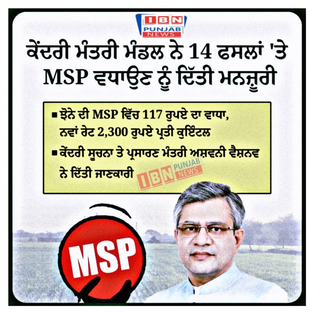 Union Cabinet approves increase in MSP on 14 crops Paddy MSP hiked by Rs 117 New rate Rs 2300 per quintal