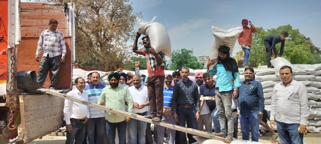 Rajpura, April 3 (Himanshu Harry): The government procurement process of wheat at the local new grain market has started from April 1 and the lifting of the wheat purchased by the farmers has been started by the departmental Pangrain. On this occasion, the president of the Aarthi Association, Sardar Davinder Singh Baidwan, informed that the government procurement of wheat has started from April 1 at the Rajpura grain market. On that day, the payment for the wheat purchased by Sharanjit Singh, a farmer from Pakisan village Rangian, has been credited to his account and the lifting has also been done today. He said that all arrangements have been made to purchase the farmers’ crops smoothly so that the Aarthi and the farmers do not have to face any kind of problem. On this occasion, the AFSO said that the lifting of wheat has started today by the Pangrain and in the future also the payment for the wheat purchased in this way will be credited to the farmer’s account and the lifting will also be done soon. On this occasion, the Inspector Napinder Singh, Jaswinder Singh, Manish Jindal, Sunil Bajaj, Johnny, Vijay Kakkar along with the agents and contractors were present.